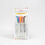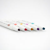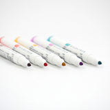 Estos marcadores tienen una característica particular, su tinta es suave, lo que permite que no sea tan invasivo. Cuenta con tinta base de agua. Cada marcatextos tiene doble cara o punta: una punta de pincel estándar en un extremo y en el otro extremo una punta de bala fina para subrayar, rodear o escribir notas.