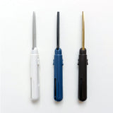 Estas increíbles tijeras portátiles, delgadas y del tamaño de un simple bolígrafo son un gran accesorio y herramienta de stationery. Las orejas de las tijeras se contraen cuando no se usan, por lo que el tamaño de estas tijeras queda tal cual como un bolígrafo. Una tapa translúcida cubre las hojas y las hace fáciles de encontrar entre tus cosas. Estas tijeras cuentan con hojas de acero inoxidable que pueden cortar fácilmente una variedad de materiales, desde plástico delgado hasta cartulina gruesa.