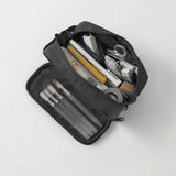 Estuche para bolígrafos fabricado en nailon ligero y duradero, con un práctico asa y un refuerzo que lo mantiene de pie. Sus bolsillos interiores ofrecen un almacenamiento organizado y de gran capacidad. Su diseño de amplia apertura facilita el acceso a los artículos.