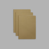 Nuestras básicas originales kraft tienen 80 páginas totales y tú eliges el tipo de layout interior: rayas, cuadros, puntos, ahuesado o liso. Cada libreta mide 14x19 cm y esta cosida a mano al lomo. Sí, a mano, una por una. Cada kit tiene 3 libretas.
