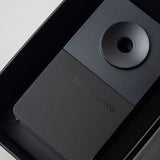 El sacapuntas está revestido en una resistente carcasa de polímero y metal negro mate que se ve elegante y se siente muy bien al tacto. También cuenta con un cajón para vaciar las virutas que se bloquea con un *clic* satisfactorio en la parte de atrás del sacapuntas.