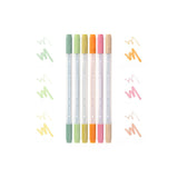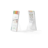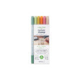 Este juego de 6 plumones de la marca Midori funcionan para toda clase de papeles, y son muy amigables en contacto con la tinta de sellos. Tiene dos puntas, lo que lo hace una herramienta versátil, un extremo es de pincel mientras que el otro es sólido de .5mm. Otro detalle es que el empaque funciona como soporte para que puedas colocar verticalmente tus plumones en el escritorio.