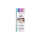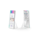 Este juego de 6 plumones de la marca Mdori funcionan para toda clase de papeles, y son muy amigables en contacto con la tinta de sellos. Tiene dos puntas, lo que lo hace una herramienta versátil, un extremo es de pincel mientras que el otro es sólido de .5mm. Otro detalle es que el empaque funciona como soporte para que puedas colocar verticalmente tus plumones en el escritorio.