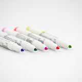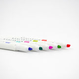 Cada marcatextos tiene doble cara o punta: una punta de pincel estándar en un extremo y en el otro extremo una punta de bala fina para subrayar, rodear o escribir notas.
