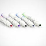 Estos marcadores tienen una característica particular, su tinta es suave, lo que permite que no sea tan invasivo. Cuenta con tinta base de agua. Cada marcatextos tiene doble cara o punta: una pinta de cincel estándar en un extremo y en el otro extremo una punta de bala fina para subrayar, rodear o escribir notas.